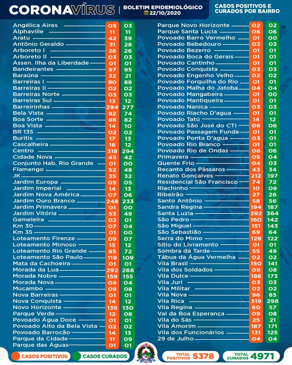 Home Article Veja a situação da covid 19 em Barreiras Veja a situação da covid 19 em Barreiras Paulo de Souza outubro 22, 2020