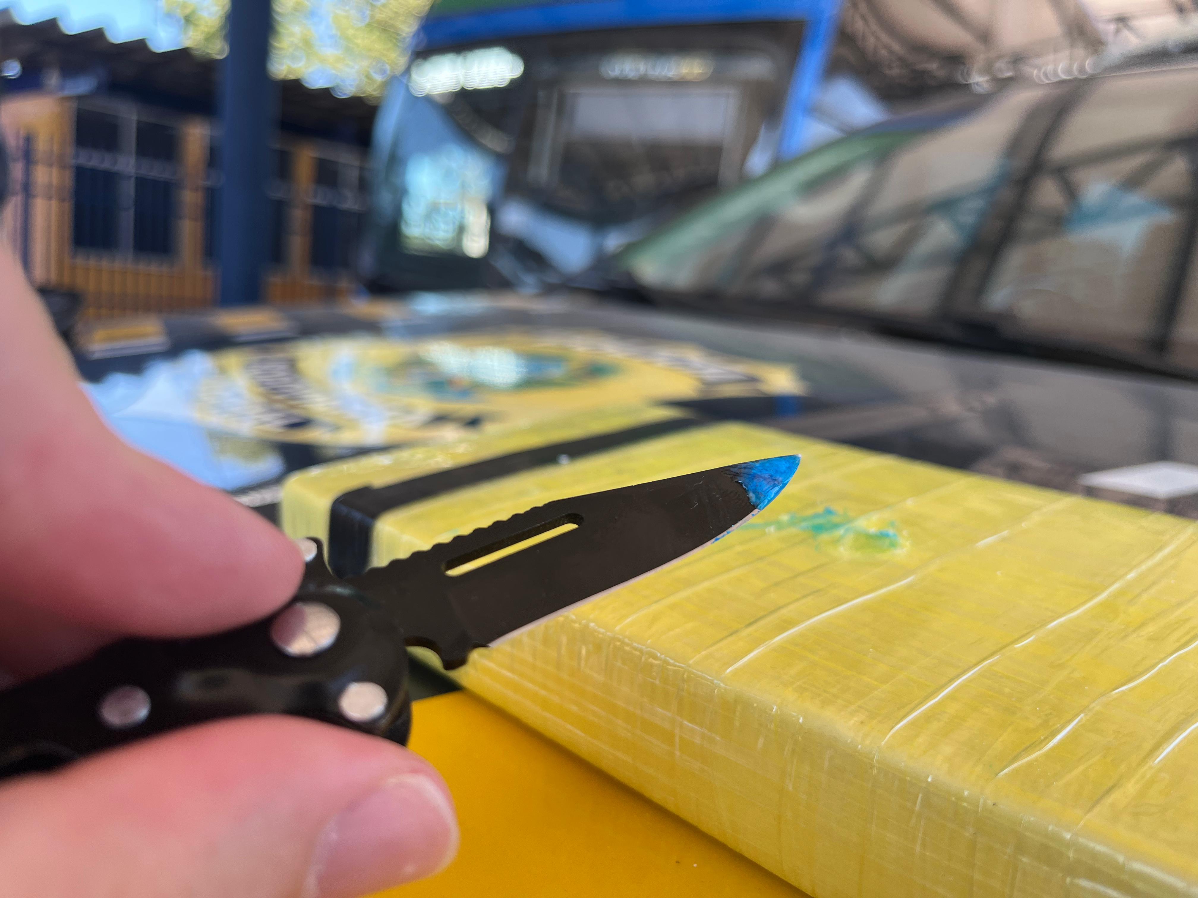 As embalagens estavam envolvidas em plástico e fita adesiva, conforme técnicas comumente utilizadas para o transporte ilegal de entorpecentes. A substância foi submetida ao teste preliminar com reagente químico Tiocianato de Cobalto, que confirmou a presença de cocaína.